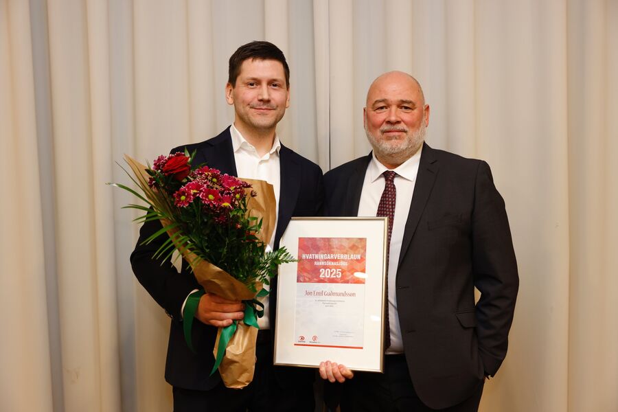 Hvatningarverðlaun Rannsóknasjóðs voru veitt framúrskarandi vísindamanni á rannsóknaþingi í dag. Dr. Jón Emil Guðmundsson, lektor við Raunvísindadeild Háskóla Íslands, hlaut verðlaunin fyrir árið 2025. Logi Einarsson, menningar-, nýsköpunar- og háskólaráðherra afhenti verðlaunin.