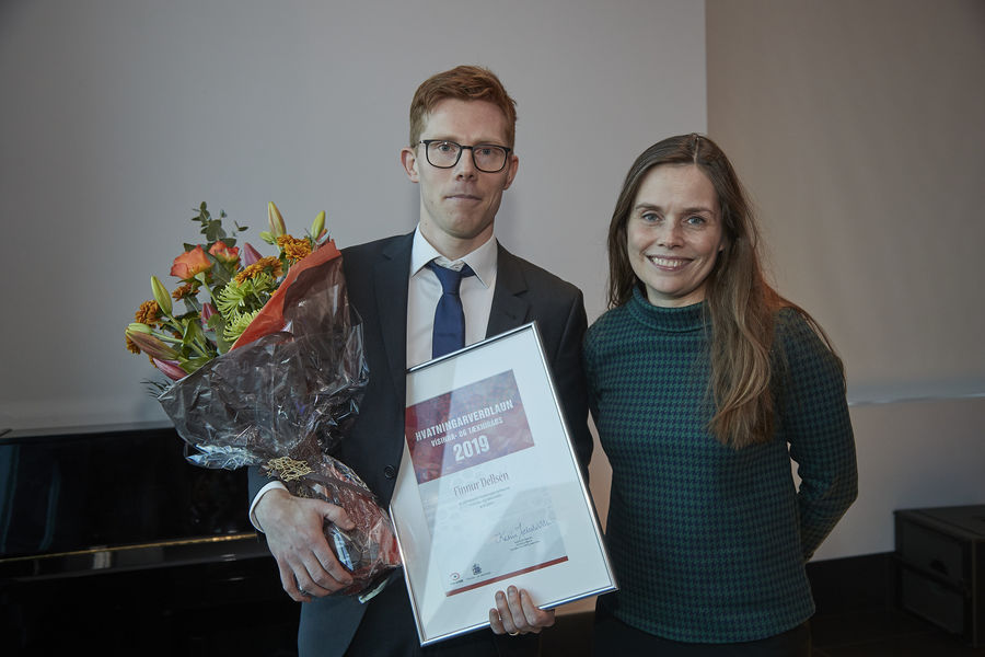 Hvatningarverðlaun Vísinda- og tækniráðs voru afhent við hátíðlega athöfn á Rannsóknaþingi Rannís í dag. Finnur Dellsén, dósent í heimspeki við Háskóla Íslands, hlaut viðurkenninguna að þessu sinni. Katrín Jakobsdóttir, forsætisráðherra og formaður Vísinda- og tækniráðs, afhenti Finni verðlaunin.