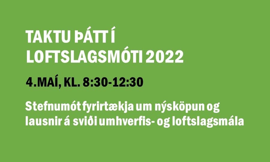 Stefnumót fyrirtækja um nýsköpun og lausnir á sviði umhverfis- og loftslagsmála þann 4. maí 2022 í Gullteig á Grand Hótel kl. 08:30 – 12:30