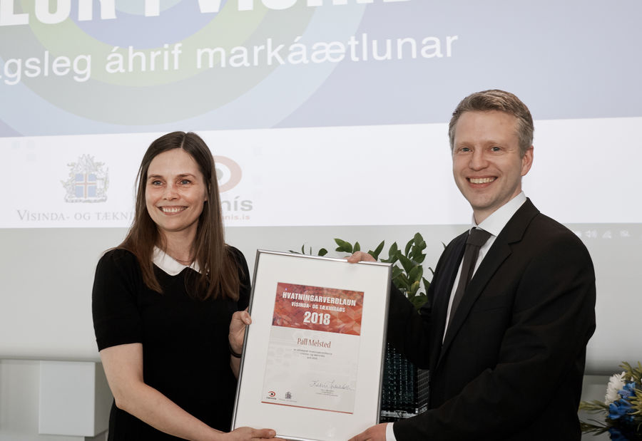 Hvatningarverðlaun Vísinda- og tækniráðs voru afhent við hátíðlega athöfn á Rannsóknaþingi Rannís í dag. Dr. Páll Melsted, prófessor við iðnaðarverkfræði-, vélaverkfræði- og tölvunarfræðideild Háskóla Íslands, hlaut viðurkenninguna að þessu sinni. Katrín Jakobsdóttir, forsætisráðherra og formaður Vísinda- og tækniráðs, afhenti Páli verðlaunin. Í ræðu sinni sagði ráðherra: