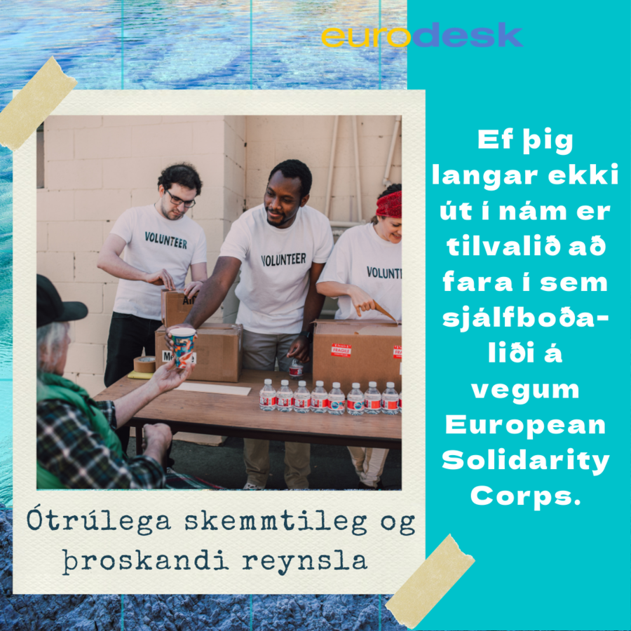 Eurodesk er evrópsk upplýsingaveita sem styður við Erasmus+ áætlunina. Á samfélagsmiðlum Eurodesk eru ný og skemmtileg tækifæri fyrir ungt fólk í Evrópu birt reglulega og vakin athygli á þeim ólíku möguleikum sem Erasmus+ og European Solidarity Corps hafa að bjóða. Eurodesk heldur einnig úti leitarvél um nám, starfsnám, sjálfboðaliðastörf, styrki og ýmis önnur skemmtileg verkefni. Hægt er að hafa samband með því að senda skilaboð á samfélagsmiðlum Eurodesk eða á netfangið eurodeskis@eurodesk.eu