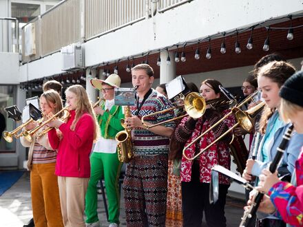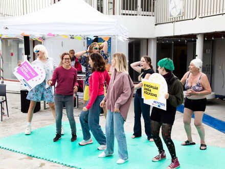 Skólahljómsveit Kópavogs reið á vaðið í litríkum fötum með nokkur vel valin stuðlög sem komu gestum í rétta gírinn, hvort sem þeir voru svamlandi í lauginni eða dillandi sér á bakkanum. Þá hélt forstöðumaður Rannís, Ágúst Hjörtur Ingþórsson, stutta tölu um mikilvægi þess að skapa rými fyrir ungmenni svo raddir þeirra heyrist og virk þátttaka þeirra í samfélaginu sé tryggð.