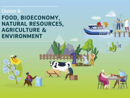 Klasi 6 - fæðuöryggi, lífhagkerfið, náttúruauðlindir, landbúnaður og umhverfismál, (Food, Bioeconomy, Natural Resources, Agriculture and Environment), miðar að því að draga úr umhverfisspjöllum, stöðva og snúa við hnignun líffræðilegs fjölbreytileika á landi, vötnum og sjó. Fara betur með náttúruauðlindir með breytingum á efnahagslífi og samfélagi í þéttbýli og dreifbýli.