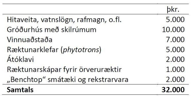 Phase 2 – sub phase A – Building the research wing: 35 – 50 million ISK (externally acquired)