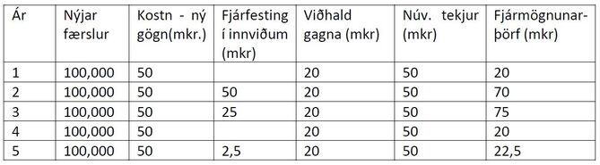 Tafla sem sýnir gróflega áætlun fyrir fjármögnunarþörf næstu 5-10 ára