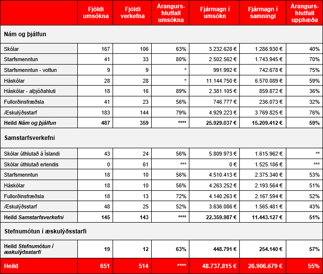 ** Á ekki við samningsupphæðin er bara hlutur íslensku aðilanna á meðan upphæð í umsókn er fyrir alla samstarfsaðilana.
