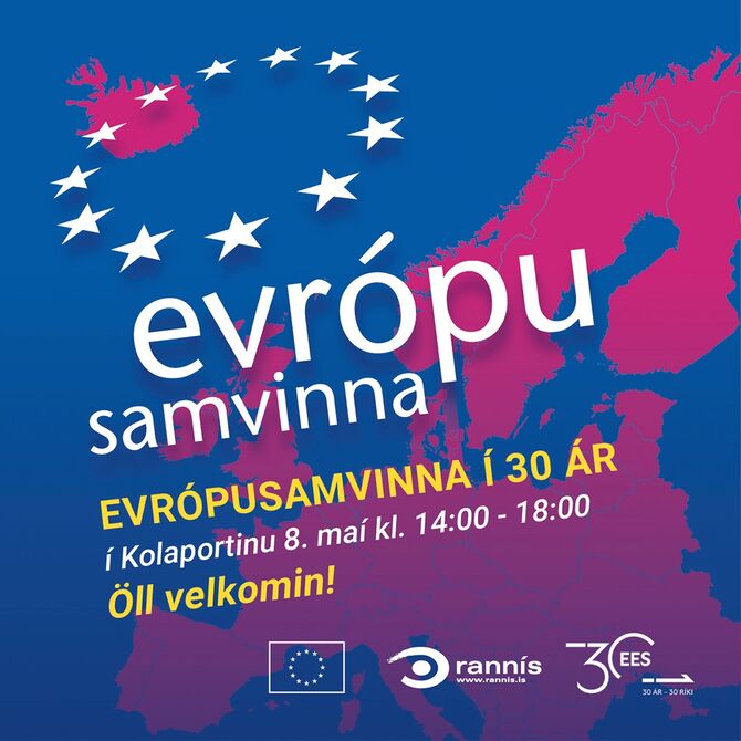Hátíðin ber yfirskriftina Evrópusamvinna í 30 ár og fer fram miðvikudaginn 8. maí 2024 frá klukkan 14:00 til 18:00 í Kolaportinu.